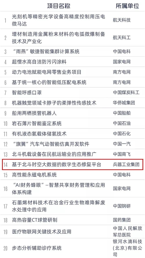 為落實黨中央、國務院關于加快實施創新驅動發展戰略、深入推進大眾創業萬眾創新的決策部署,加快推動中央企業創新創業高質量發展,國資委于2020年9月組織開展了第三屆中央企業熠星創新創意大賽。 大賽啟動以來,各中央企業積極組織參加,社會創新團體踴躍參與,共3340個項目、2.3萬余人報名參賽。通過項目初選和復選,共有516個項目面向社會進行了投資路演和對接,吸引眾多投資機構和知名企業參與,達成一批合作意向。 經總決賽評選,共評選出一等獎20項、二等獎30項、三等獎50項、優秀獎100項,中國兵器工業集團有限公司4個項目獲獎并榮獲“優秀組織單位”。 兵器工業集團獲獎項目 一等獎(1個) 基于北斗時空大數據的數字生態修復平臺(創意類) 三等獎(1個) 三合一北斗智能邊海防管控終端(創新類) 優秀獎(2個) 基于北斗的鐵路工程測量創新應用(創意類) 公共交通一體化智慧監測系統(創新類) 完整獲獎名單 |