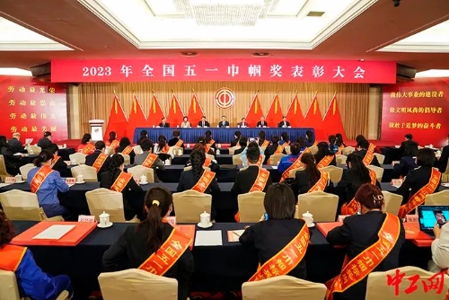 3月24日,2023年全國五一巾幗獎表彰大會在北京召開。圖為表彰大會現場。中工網記者 王鑫 攝