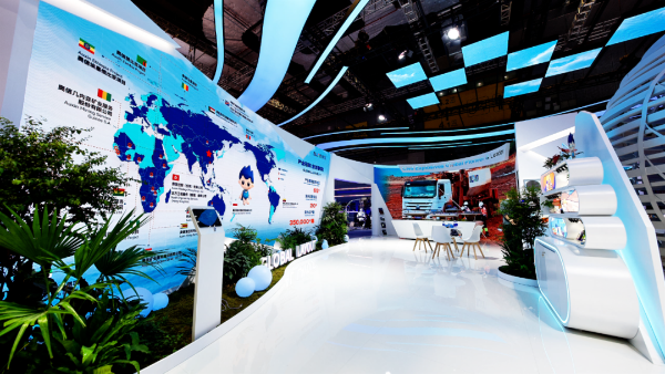 北方國際組展展區創新使用5D穹幕電影、UI互動屏幕、2.5D墻上沙盤等手段,綜合展示國際化經營與共建“一帶一路”的豐碩成果,尤其是在電力全形態領域的投資及工程服務領域的專業能力,圍繞礦產資源的全產業鏈一體化工程服務水平以及軌道交通等領域以系統集成為核心的國際工程承包業務。