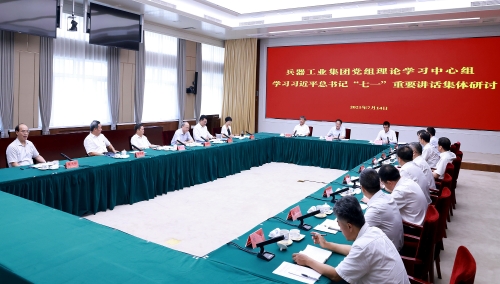 7月14日,中國兵器工業集團有限公司黨組書記、董事長焦開河主持黨組理論學習中心組集體學習研討,學習貫徹習近平總書記“七一”重要講話精神,交流學習心得體會,結合集團公司改革發展實際和各自分管領域、本職工作,研討貫徹落實思路措施。
